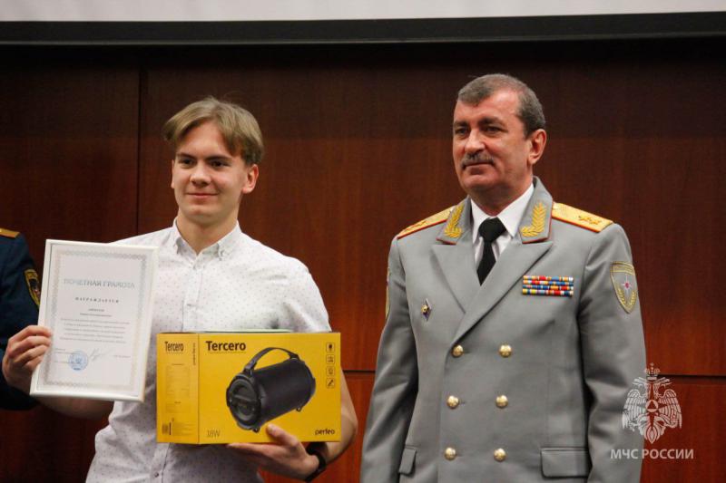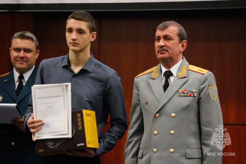 А еще неделю спустя — 27 декабря, в День спасателя Российской Федерации, — юные герои были приглашены на торжественное мероприятие, ежегодно проходящее в Главном управлении МЧС России по Свердловской области, в ходе которого награждают отличившихся сотрудников и номинантов фестиваля «Созвездие Мужества». В номинации «Дети-герои» вновь отметили героический поступок наших ребят. Начальник Главного управления МЧС России по Свердловской области генерал-лейтенант внутренней службы Виктор Теряев вручил Даниилу Прямушко и Степану Кириллову Дипломы номинантов фестиваля «Созвездие Мужества», а также Почетные грамоты Министерства Российской Федерации по делам гражданской обороны, чрезвычайным ситуациям и ликвидаций последствий стихийных бедствий, подписанные генералом-лейтенантом А.Куренковым.