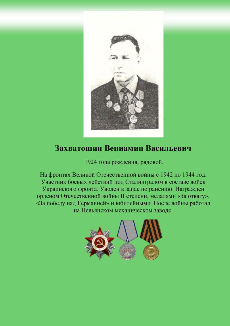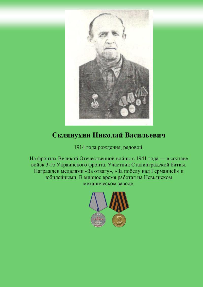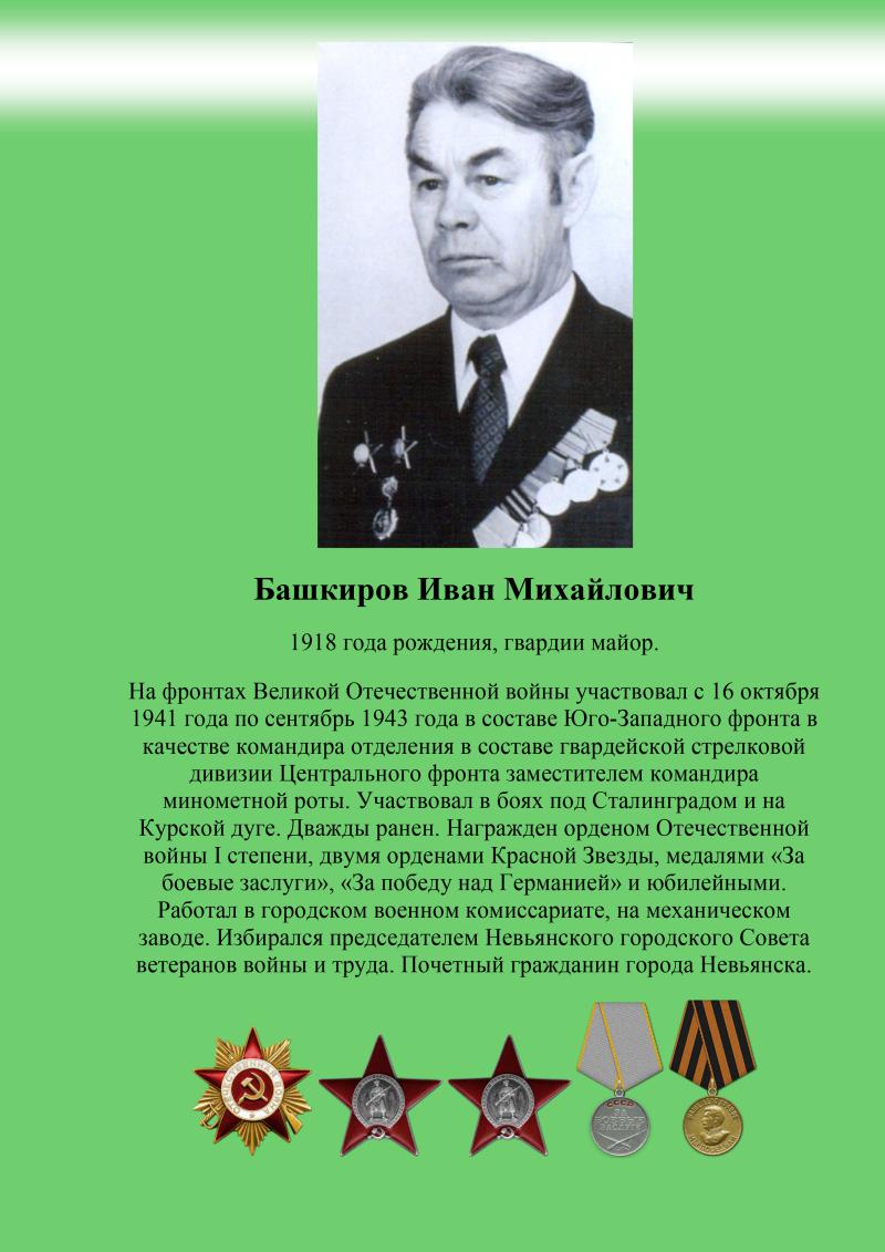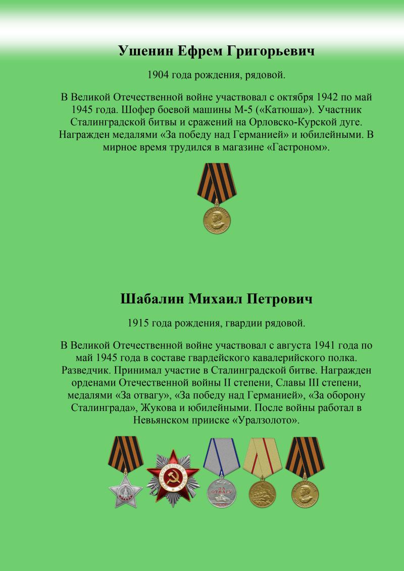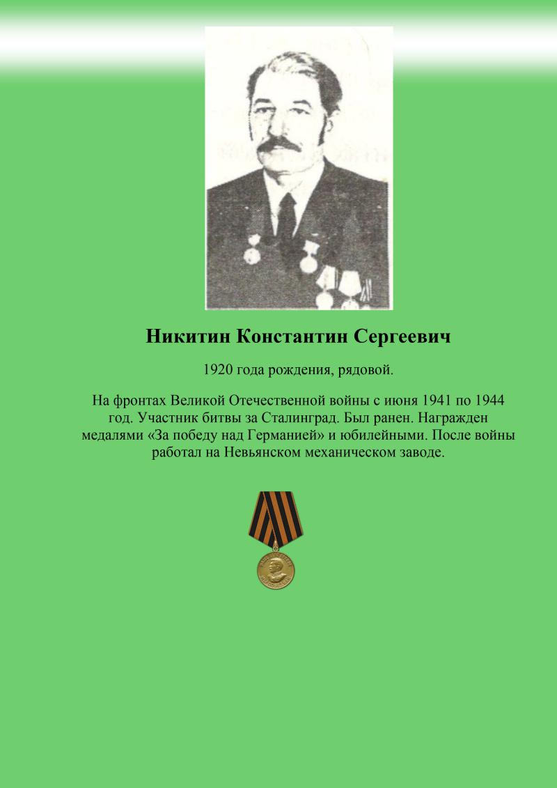 Более полутора тысяч километров отделяют Невьянск от Волгограда. Но невьянцы внесли свой вклад в победу под Сталинградом. И не только титаническим трудом в тылу – на полях сражений были и наши земляки, многие из них отдали свою жизнь за Сталинград. Это Николай Николаевич Кошев, Матвей Тимофеевич Шиян, Александр Максимович Трофиш, Алексей Афанасьевич Шапкин, Николай Степанович Тамакулов, Александр Петрович Лысенко, Михаил Иванович Сыпачев, Иван Васильевич Климин, Иосиф Потапович Веремьев, Иван Степанович Кукушкин Виктор Вячеславович Пильников