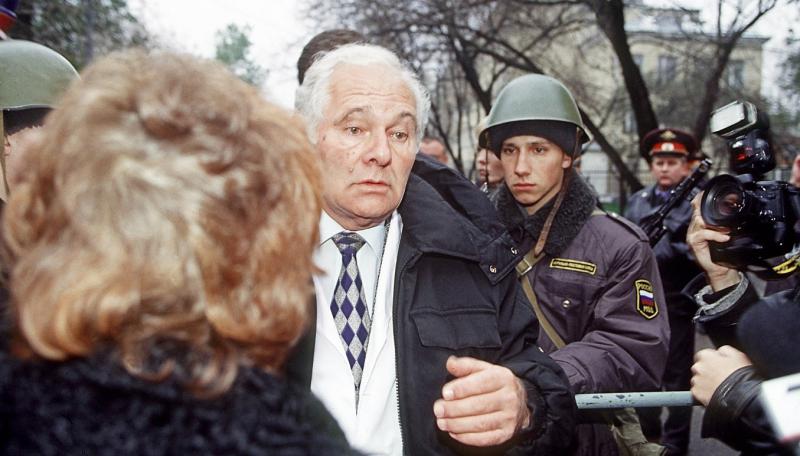 Руководитель отделения неотложной хирургии научного центра РАМН Леонид Рошаль рассказывает журналистам об оказании медицинской помощи больным заложникам, захваченным террористами в здании Театрального центра на Дубровке. Им были переданы лекарства и медикаменты. Фото: Владимир Вяткин / РИА Новости