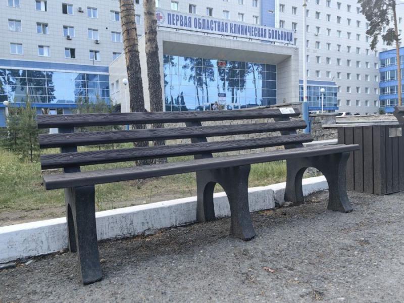 Необычные элементы благоустройства установили на аллее у стационара Свердловской областной клинической больницы № 1 (СОКБ № 1). Они изготовлены из переработанного пластика, который собрали сотрудники медучреждения.