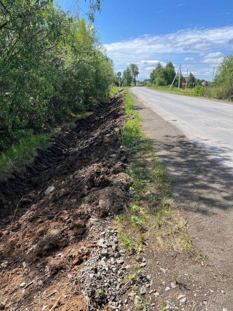 Также идёт ремонт дороги, проходящей через посёлок Кордюково, от въезда до выезда. Здесь рабочие также вырубили и выкорчевали кустарники, которые затянули обочины, восстановили водоотводные кюветы. Сейчас дорожники укрепляют участки со слабым основанием, чтобы уложенный асфальт прослужил дольше.
