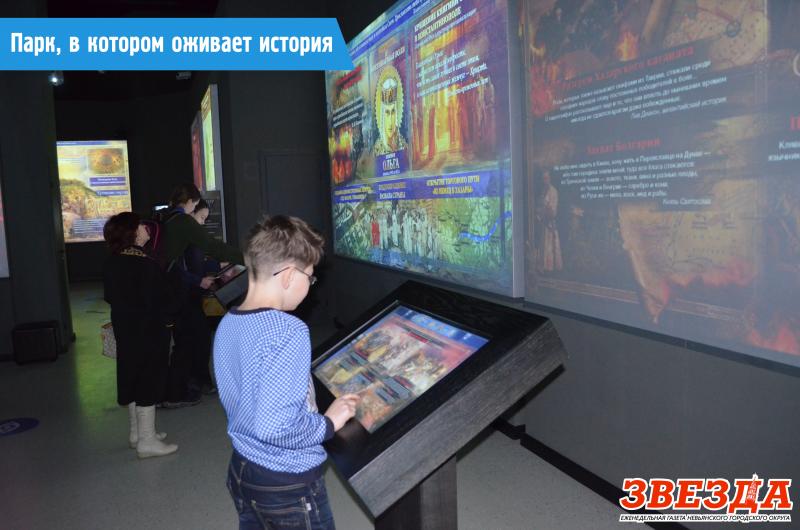 Экспозиций и, как следствие, обзорных лекций — четыре. Но специалисты парка готовы предложить своим посетителям лекции по более узким темам, буквально по каждому разделу школьной программы. Причем, если брать визуализацию, то здесь есть все, что так привлекает современную молодежь, привыкшую к электронным средствам коммуникации и мультимедийному оборудованию: видео-инфографика, 3D-моделирование, цифровые реконструкции, анимация, современные спецэффекты, тачскрин-панели с интереснейшими историческими фактами и даже викторинами на знание истории, мультимедийные столы и многое другое, но все такое же — захватывающее дух. Одним словом, это может быть и типичный урок, и внеурочная деятельность, и самостоятельный поиск ответов на поставленные педагогом вопросы, и увлекательный квест.