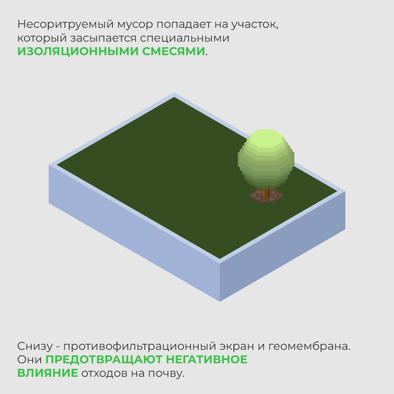 Когда карта заполняется, она консервируется – пересыпается техногрунтом, и в перспективе — после государственной экологической экспертизы и проектирования — покрывается землёй, засеивается травой и кустарником, превращается в холм, глядя на который и не скажешь, что здесь был полигон.