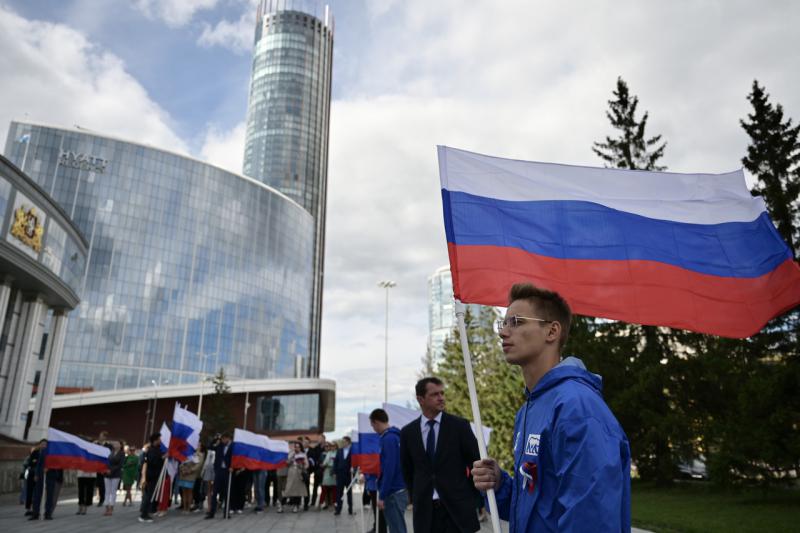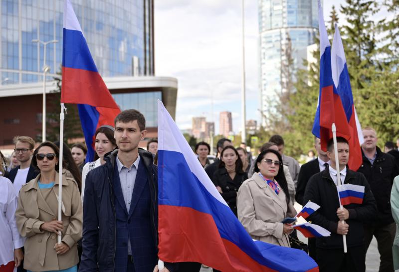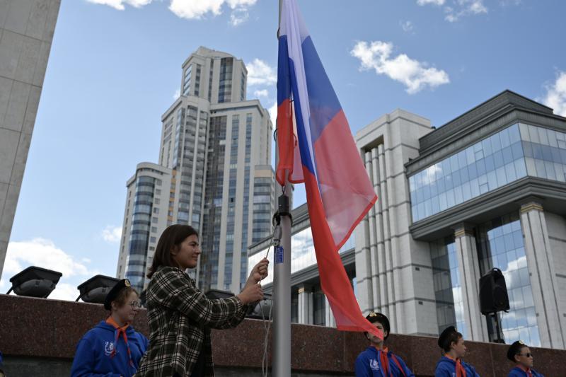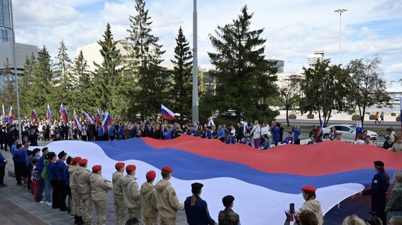 Торжественная церемония поднятия флагов Российской Федерации и Свердловской области, посвящённая Дню государственного флага Российской Федерации, состоялась в Екатеринбурге у здания регионального правительства.