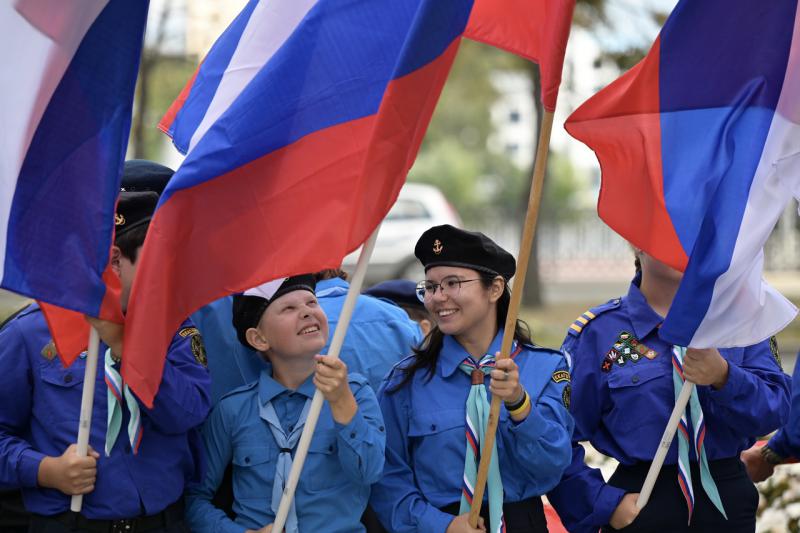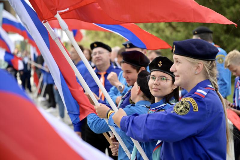 В заключение церемонии молодые спортсмены и активисты развернули российский триколор площадью 36 квадратных метров на площадке перед зданием регионального правительства.