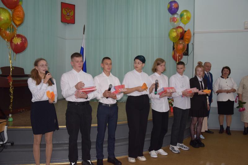Принимала на линейке поздравления и Лариса Ивановна Нечкина, учитель иностранного языка, педагогический стаж которой в этом году составил 50 лет!