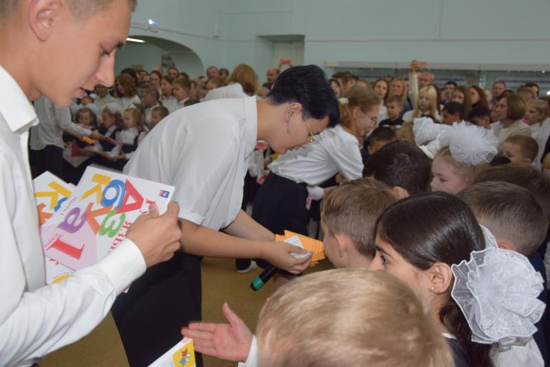 Конечно же, особое внимание в День знаний было приковано к самым юным участникам праздника, нынешним первоклассникам. Все с умилением выслушали стихи в их исполнении, в которых виновники торжества обещали передать все свои игрушки младшим в семье и учиться непременно с удовольствием и интересом. Старшеклассники поспешили дать свои напутствия малышам, вручили детям их первый учебник – азбуку и бумажные самолетики с пожеланиями.