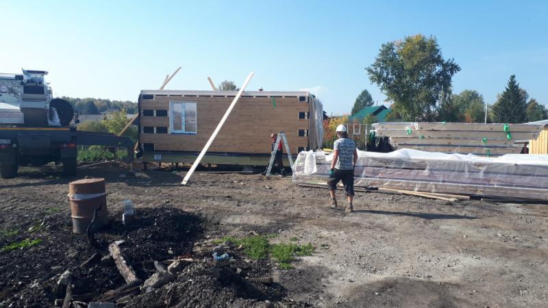 В Шайдурихе начался монтаж домов для жителей села, оставшихся без жилья в результате июльского пожара. К середине нынешней недели в селе были смонтированы четыре домокомплекта.