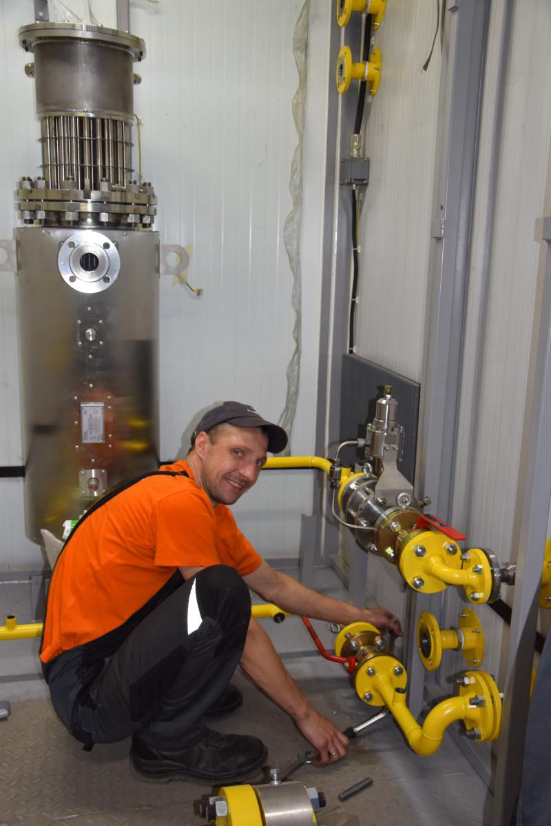 - Непосредственное производство компрессорного оборудования на площадке НМЗ стартует на участке заготовки, где режется металл необходимых размеров, затем за дело берутся сварщики, изготавливая основание блок-бокса (коробки) станции, - рассказывает инженер-технолог Никита Савин. — После покрасочных работ основание тщательно проверяют и передают на утепление: станции используются в самых суровых климатических условиях. Практически по той же схеме изготавливаются стены и крыша блок-бокса, после чего работники бригады приступают к сборке и монтажу уникального содержимого компрессорной станции.