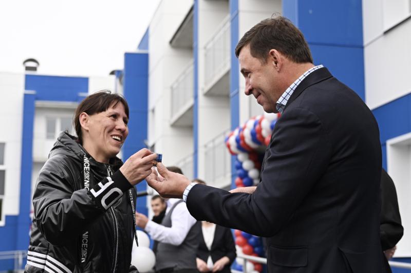 Губернатор Свердловской области Евгений Куйвашев 27 сентября вручил ключи от квартир и домов жителям Сосьвы, лишившимся крыши над головой из-за серьезного пожара. Погорельцы расселены в квартиры в новом трехэтажном доме и в индивидуальные жилые дома.