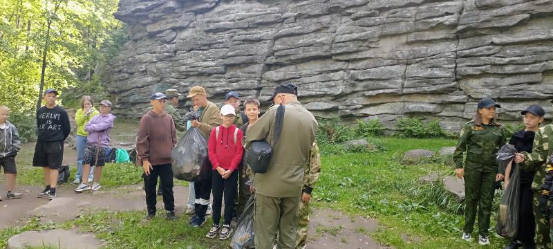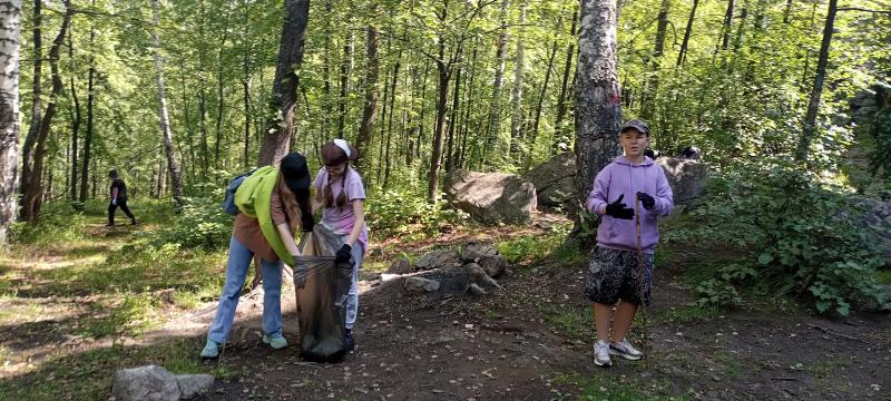 Силы вернулись мгновенно. Был объявлен привал и перекус. Оставлять после себя мусор не планировалось, поэтому все упаковали в пакеты и провели экологическое состязание по сбору мусора на территории. Получили перчатки мешки и ринулись на поиски мусора, которого было мало, а потому пришлось не по одному разу в «охотничьем» азарте обойти скалы, чтобы заполнить мешок. Победителям (одной из двух участвующих команд) достались шоколадки, а проигравшим - конфеты, фантики от которых мы по праву положили в свой мешок.