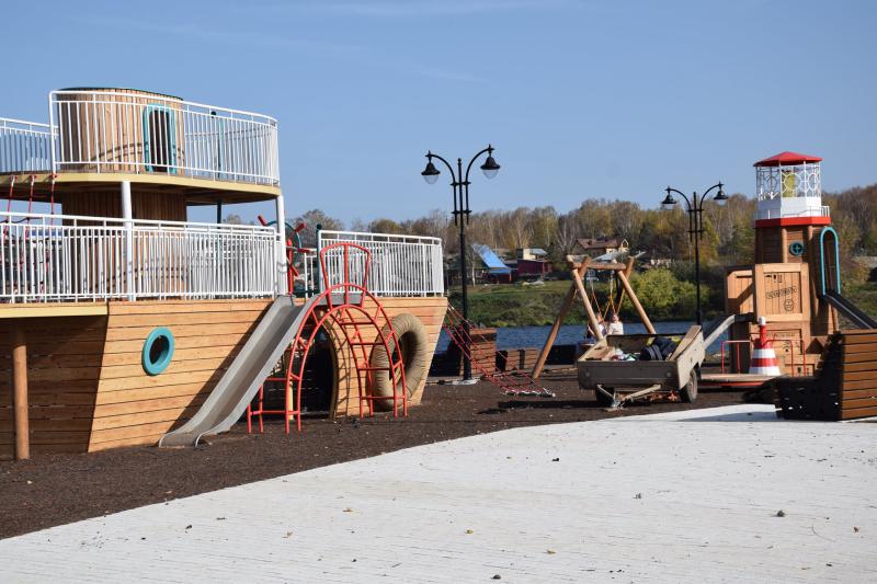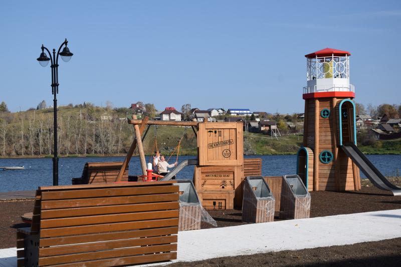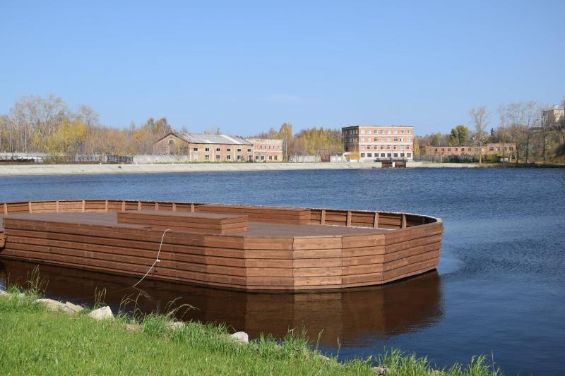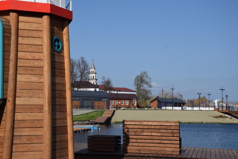 Территория площадью 1,3 гектара функционально разделена на шесть зон. На набережной обустроена прогулочная зона с инсталляциями, «Сухой фонтан», понтонный пирс с мотивами сундучного промысла, сетки-лежаки, хоккейный корт, трибуны. Каждая площадка символизирует определенную эпоху: от времен Демидовых до современности.