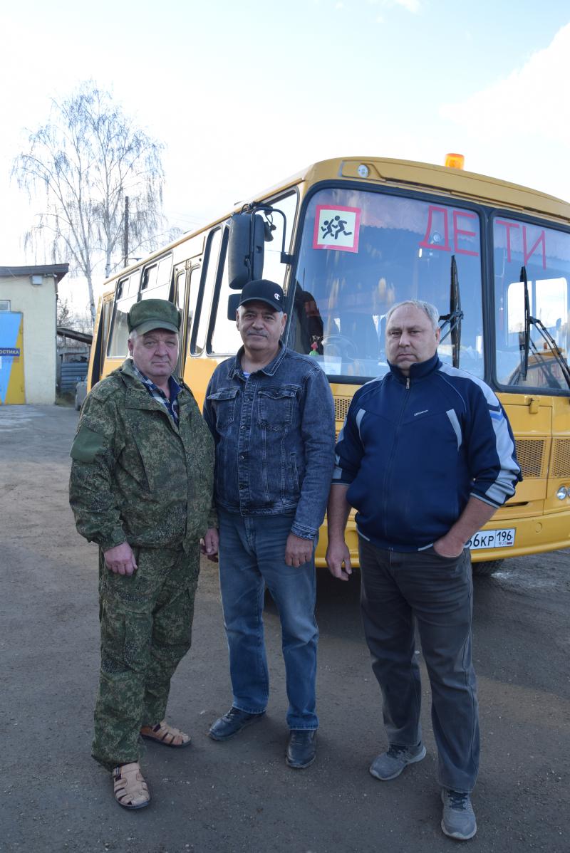 Чуть позже сели за руль школьных автобусов водители Игорь Дюбанов, Андрей Казанцев (осуществляют доставку детей в школу с.Аятского), Федор Ваганов (в школу пос.Цементного), Михаил Зырянов (в школу №6 из района ПАТО), но сразу проявили себя как опытные работники. Демонстрируют необходимые водителю качества и относительно недавно прибывшие мужчины: Александр Балакин и Сергей Мартюшев (доставляют ребятишек в школу №6 из с.Шурала и районов ДРСУ, железнодорожного вокзала), Игорь Черепанов (в школу с.Быньги и спортивную школу), Алексей Сметанин (в школу пос. Калиново).