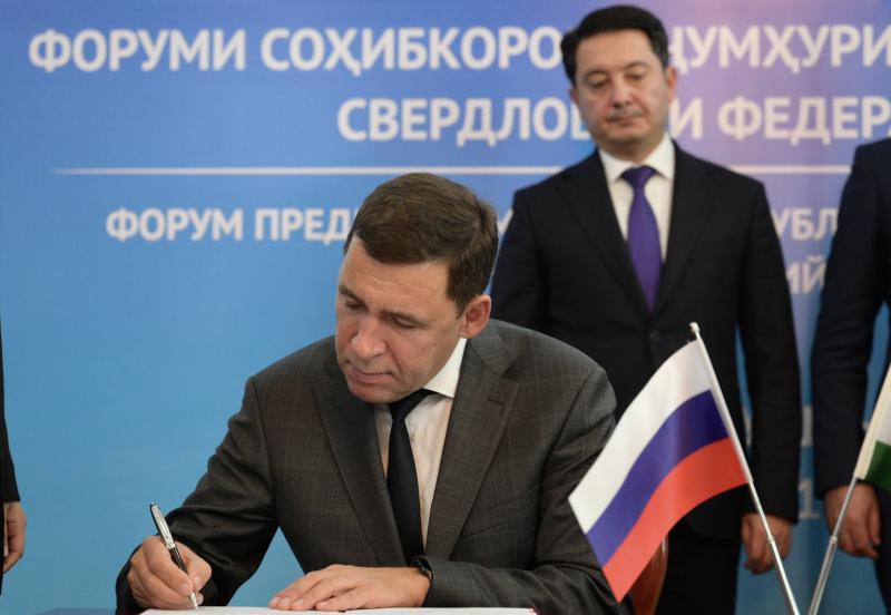 Губернатор Евгений Куйвашев и министр промышленности и новых технологий Республики Таджикистан Шерали Кабир подписали протокол о намерениях в установлении сотрудничества между правительством Свердловской области и министерством промышленности и новых технологий Республики. Документ подписан в рамках бизнес-форума, который состоялся в Душанбе.
