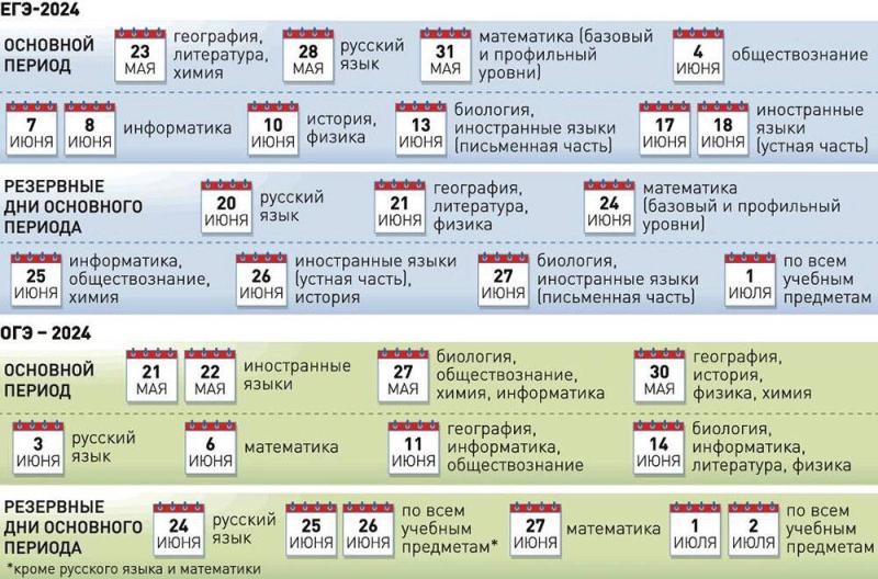 А вот в расписании основного госэкзамена есть кое-что новое. Так же, как и ЕГЭ, экзамен для девятиклассников поделен на три периода: досрочный, основной, дополнительный. Так вот, по итогам общественного обсуждения поступили предложения изменить некоторые даты основного периода. Например, экзамены по иностранным языкам, которые ранее были запланированы на 24 и 25 мая 2024 года, теперь перенесены на 21 и 22 мая. Почему? Просто обычно 24 и 25 мая в школах проходят традиционные "последние звонки", в том числе и у ребят, которые после 9 класса покидают школу.