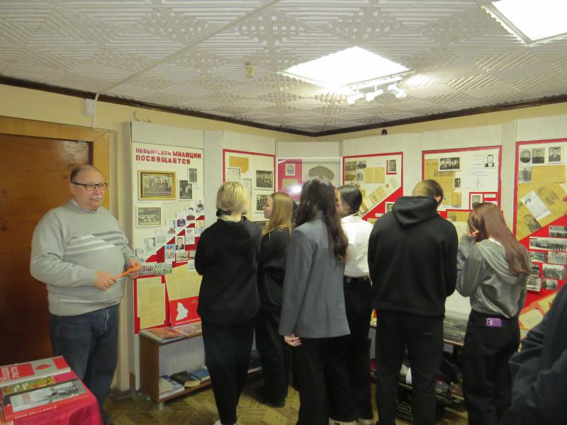 В начале мероприятия ветеран отдела майор милиции в отставке Олег Лобанов провел экскурсию в музее истории ОВД Невьянска. Он ознакомил детей с историей создания и становления органов правопорядка в России и Невьянском районе. Экскурсанты узнали много интересного о профессии полицейского, ведь в музее хранятся подлинные документы, боевые награды, фотографии, личные вещи, рассказывающие о тех, кто стоял у истоков создания правоохранительных органов, боролся с преступностью в годы Великой Отечественной войны, и о тех, кто поддерживает правопорядок сегодня.
