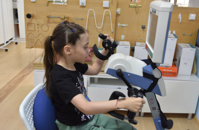 Киберперчатка «Аника» и другие приборы с биологической обратной связью способствуют восстановлению координации движений и развитию мелкой моторики. Оборудование для механотерапии позволяет в пассивном режиме улучшать гибкость суставов, наращивая амплитуду движений. Комплекс упражнений в зале для эрготерапии объединяет в себе биомеханику, психологию и педагогику. После этих занятий дети проявляют интерес к расширению своих базовых повседневных задач, лучше адаптируются в быту вопреки двигательным нарушениям.