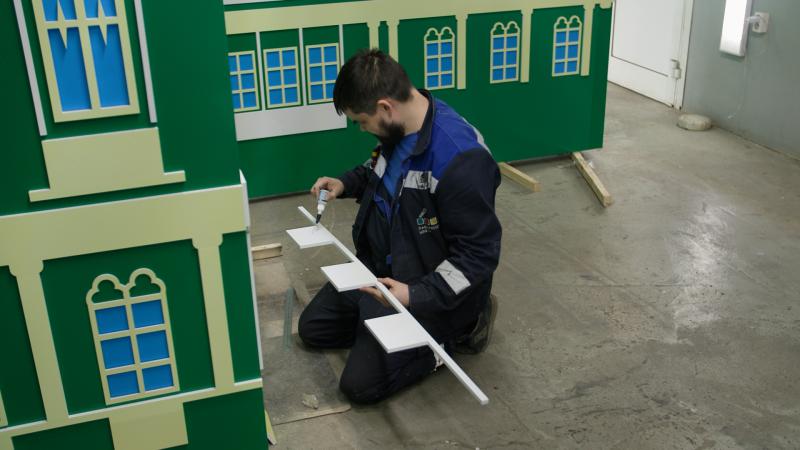 «Над макетом работали 15 человек, включая дизайнера, конструктора, оператора станков, специалистов по сборке и электрике. Сначала был изготовлен плоский макет, потом создана упрощённая 3D-модель. Чертежи сделали на фрезеровочных станках. Собрали конструкцию и смонтировали подсветку. Сам макет большегрузом будет доставлен до места проведения выставки и за оставшееся до фестиваля время установлен», – рассказал Иван Тихонов.