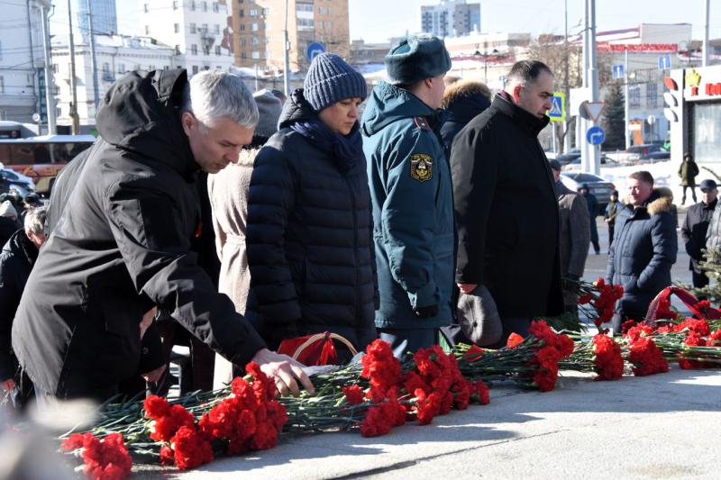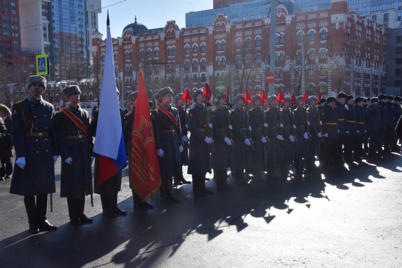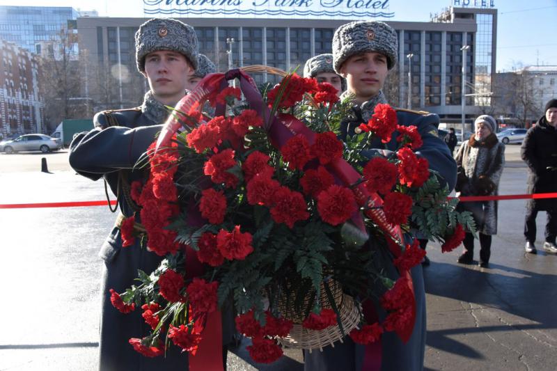 В торжественно-траурной церемонии приняли участие также ветераны, председатель Законодательного Собрания региона Людмила Бабушкина, заместитель полномочного представителя Президента Российской Федерации в Уральском федеральном округе Борис Кириллов, глава Екатеринбурга Алексей Орлов, представители командования войсками ЦВО и Росгвардии, члены областного правительства, руководители городской администрации, общественники. Губернатор и собравшееся почтили память уральских воинов минутой молчания. Рота почётного караула прошла возле памятника торжественным маршем.