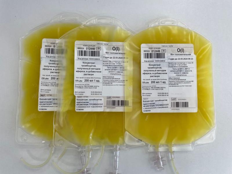 Ежегодно потребность в тромбоцитах увеличивается на 5%. В 2021 году в Свердловской области пациентам было перелито 1387 литров концентрата тромбоцитов, в 2022 году — 1435 литров, а в 2023 году — уже 1521 литр.