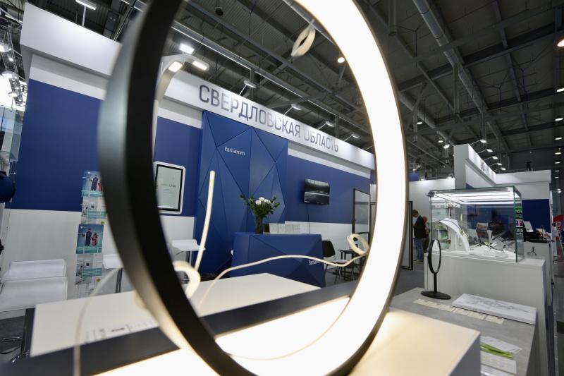 Обход стенда Свердловской области начался с презентации важнейшего для региона проекта — первой в России межмуниципальной трамвайной линии Екатеринбург-Верхняя Пышма. Это проект государственно-частного партнёрства правительства региона и компании «Верхнепышминский трамвай». В рамках проекта построено трамвайное депо, закуплены 11 низкопольных трамваев. Протяжённость линии между Екатеринбургом и Верхней Пышмой — 18 километров.