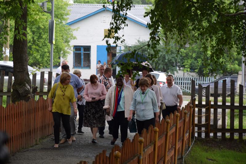 Да еще каких и сколько: 11 июля это образовательное учреждение посетила Чрезвычайный и Полномочный Посол Южно-Африканской Республики в Российской Федерации Номасонто Мария Сибандо-Туси, прибывшая в наш регион в рамках международной выставки ИННОПРОМ-2018 в сопровождении большой делегации, в состав которой вошли председатель Общеобластного родительского комитета Свердловской области, секретарь совета Л.Золотницкая, представители «Форума женщин Урала», а также представители органов местного самоуправления и общественных организаций: заместитель главы администрации по вопросам реализации инвестиционных проектов, строительству, архитектуре, и управлению муниципальным имуществом А.Сурков, заместитель председателя Думы Невьянского городского округа И.Бицюта, и.о. начальника управления образования округа Н.Бузунова, заведующий отделом физической культуры, спорта и молодежной политики В.Ступин, и.о. директора Центра спортивной подготовки Р.Нечкин, президент местной общественной организации «Федерация самбо Невьянского городского округа» А.Медведев, председатель попечительского Совета общественной организации погранвойск А.Рыков и другие. Тема встречи – «Реализации Всероссийского проекта «Самбо в школу» в условиях сельского образовательного учреждения».
