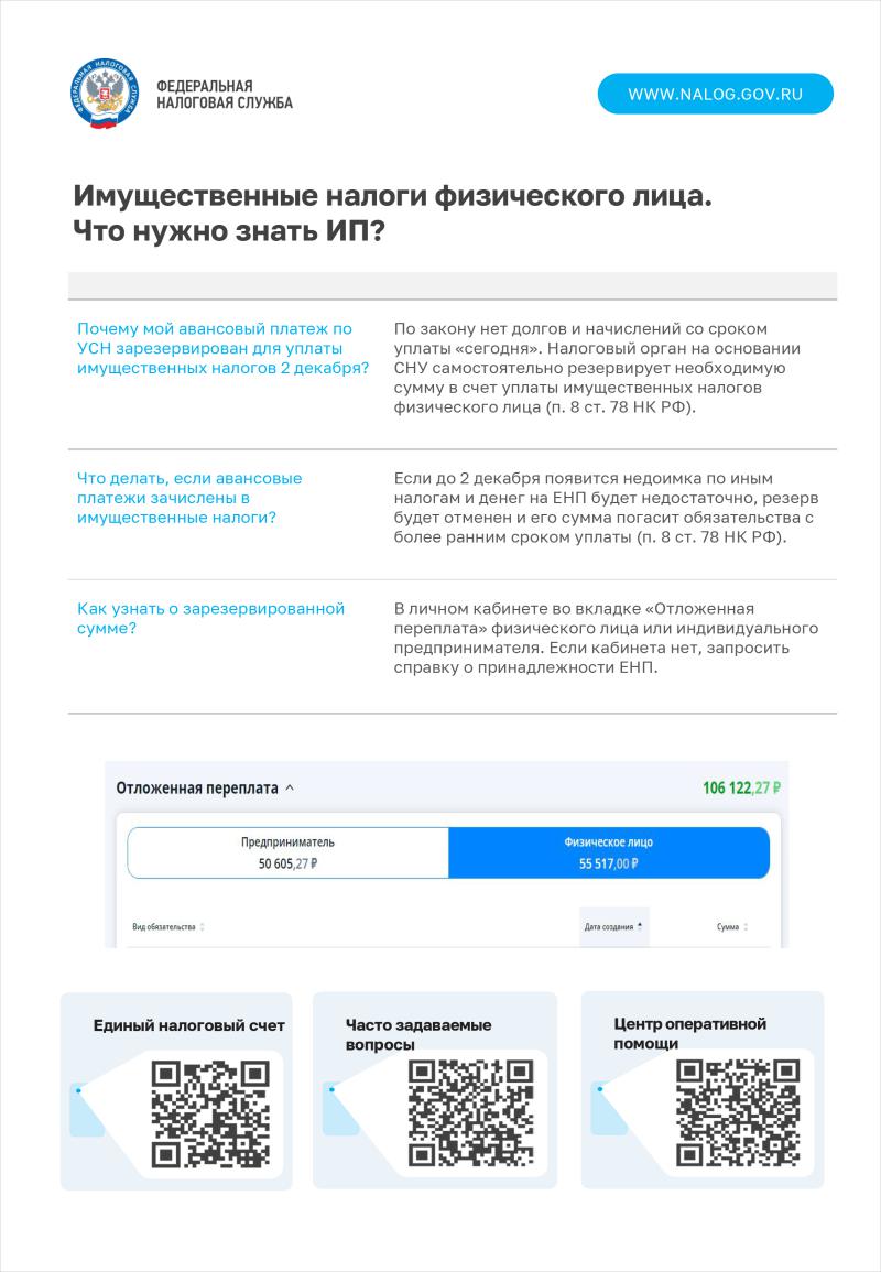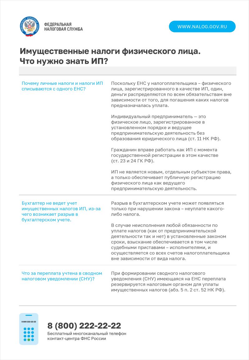 При формировании сводного налогового уведомления (СНУ) имеющаяся на ЕНС переплата резервируется налоговым органом для уплаты имущественных налогов (абз. 5 п. 2 ст. 52 НК РФ).
