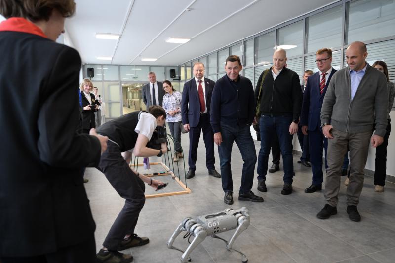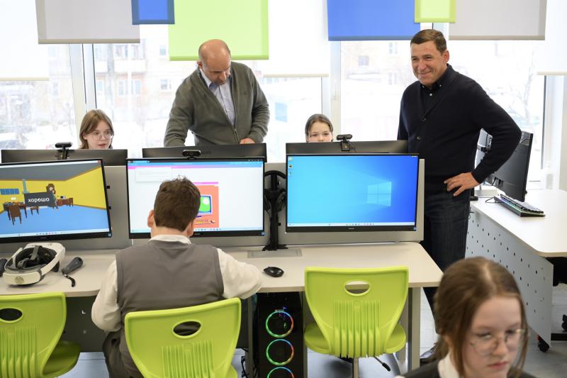 Тема образования продолжилась в лицее № 21. Глава Свердловской области продемонстрировал полпреду, как отремонтировали школу за последние пять лет. Евгений Куйвашев и Артём Жога побеседовали с лицеистами, а также осмотрели модернизованные кабинеты технологии с новыми станками и интерактивными панелями, естественно-научный центр с лабораторно-диагностическим комплексом и интерактивным анатомическим столом, а также центр информационных технологий, куда были закуплены квадрокоптеры, компьютеры и новейшее оборудование для системного администрирования.