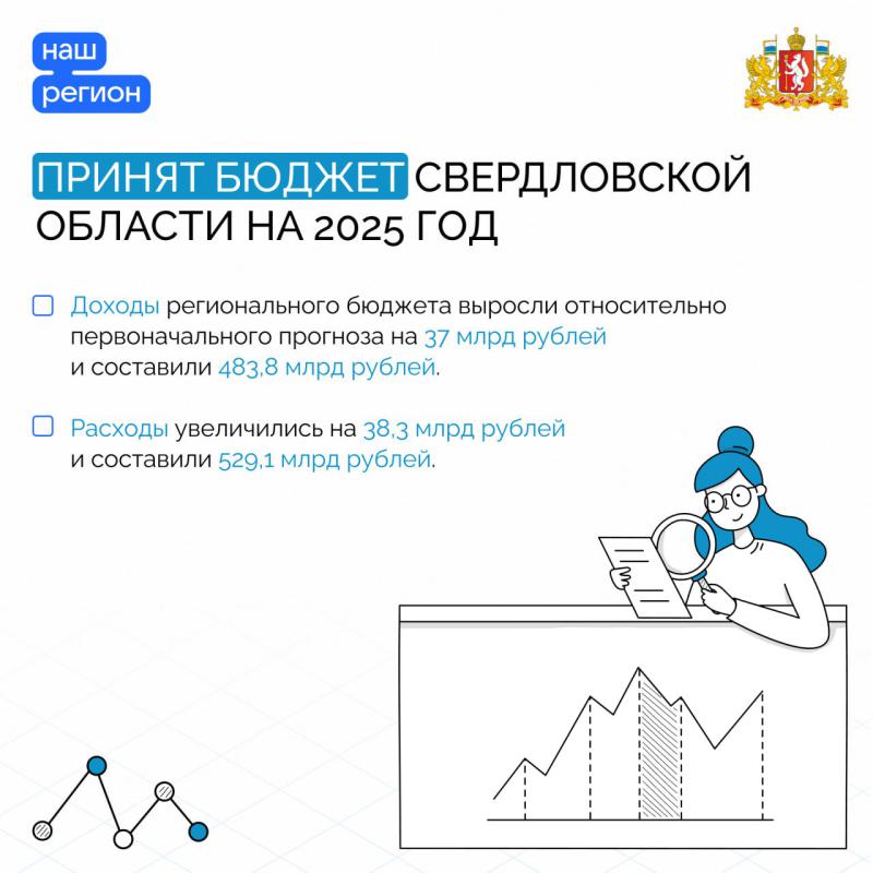 В Свердловской области принят бюджет на 2025 год и плановый период. Депутаты Законодательного Собрания региона 3 декабря одобрили соответствующий законопроект во втором и третьем чтениях. В 2025 году предусмотрено увеличение финансирования практически всех отраслей: «социалки», здравоохранения, образования, культуры, дорожного строительства, ЖКХ, благоустройства.