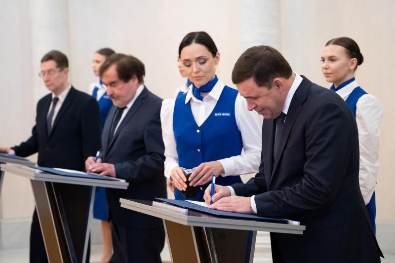 Кроме того, губернатор Евгений Куйвашев и исполняющий обязанности председателя Общественной палаты Владимир Винницкий приняли участие в церемонии спецгашения почтовой марки штемпелем, посвященным присвоению общественного статуса «Достояние Среднего Урала». В этом году были использованы конверты, изготовленные в честь 25-летия природного парка «Оленьи ручьи», одного из победителей конкурса.