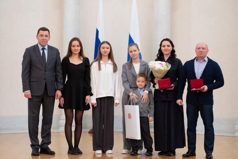 Восемь уральских многодетных семей отмечены медалями ордена «Родительская слава». Награды вручил губернатор Свердловской области Евгений Куйвашев.