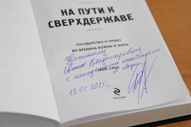 Губернатор Свердловской области Евгений Куйвашев отметил значимость книги председателя комитета по государственному строительству и законодательству Государственной Думы РФ Павла Крашенинникова «На пути к сверхдержаве. Государство и право во времена войны и мира (1939–1953)». Презентация очерка, ставшего седьмым в серии книг, посвященной истории российского государства и права с XIX века, прошла 18 февраля в Уральском государственном юридическом университете им. В.Ф. Яковлева.