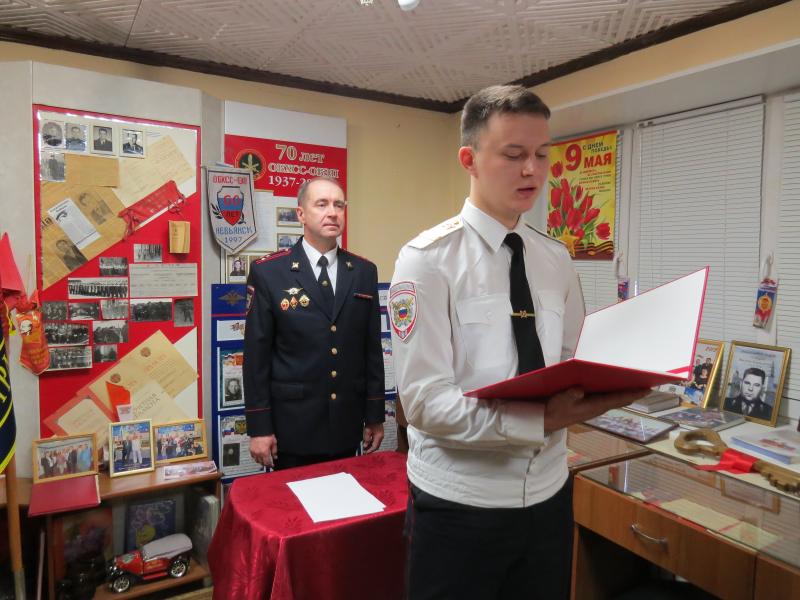В ходе Месячника Защитника Отечества в музее отдела в торжественной обстановке молодые сотрудники МО МВД России «Невьянский» приняли Присягу.