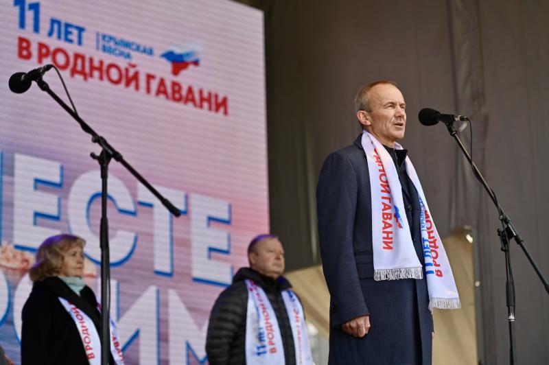 «Сегодня мы отмечаем одиннадцатую годовщину воссоединения нашей страны. Это знаковое событие в полной мере оправдало ожидания людей, послужило укреплению и развитию государства. В год 80-летия Победы в Великой Отечественной войне этот праздник приобретает особое значение. Мы помним и чтим нашу историю – историю героизма, доблести, единства. Мы едины в стремлении быть сильными, смелыми, ответственными людьми, гражданами России, защитниками Отечества», – выступил с приветственным словом вице-губернатор Свердловской области Олег Чемезов.