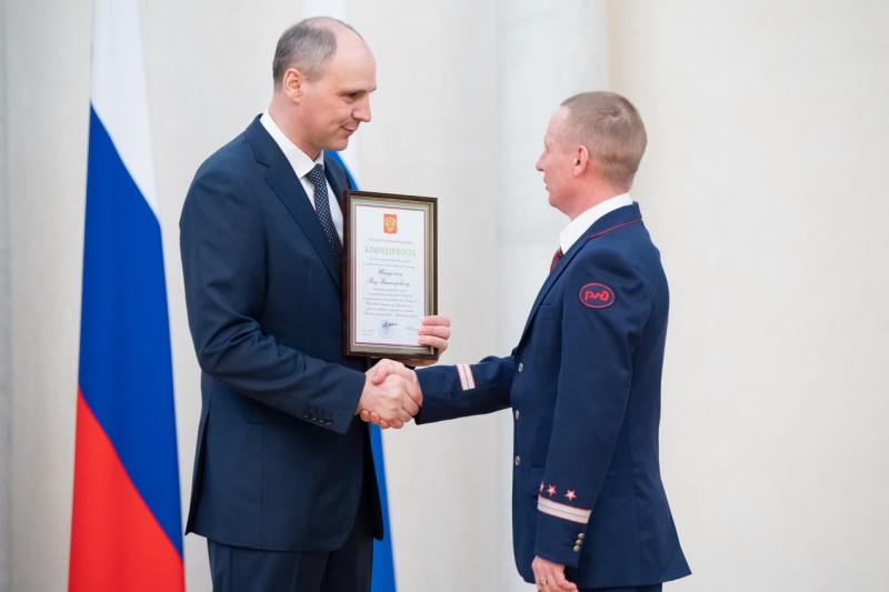 Иберфлюсу Яну Викторовичу | – машинисту электровоза участка по эксплуатации локомотивов Камышлов эксплуатационного локомотивного депо Камышлов Свердловской дирекции тяги Дирекции тяги - филиала открытого акционерного общества «Российские железные дороги»