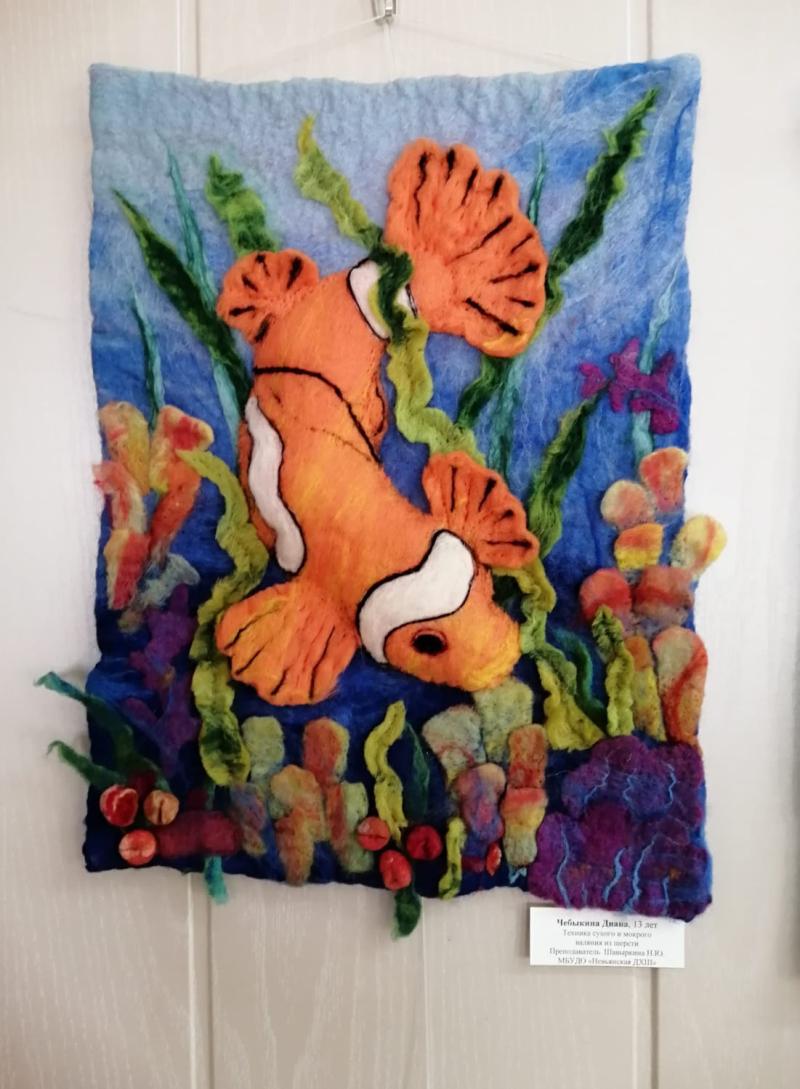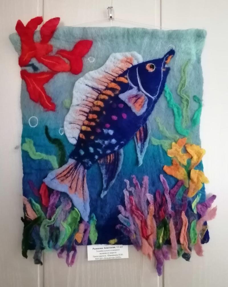 В настоящее время в художественной школе проходит яркая и интересная выставка «Подводный мир». Работы выполнены учениками шестого класса в технике мокрого и сухого валяния из шерсти. Приглашаем всех посетить нашу выставку и погрузиться в мир шерстяного волшебства.