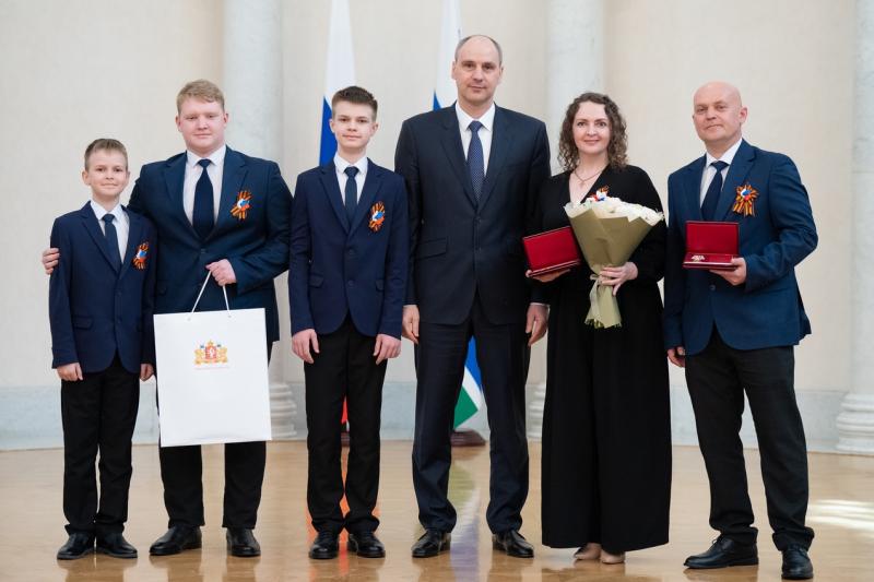 Пять супружеских пар из Свердловской области удостоены медали ордена «Родительская слава» за большие заслуги в укреплении института семьи и воспитании детей. Награды многодетным родителям вручил врио губернатора Денис Паслер 30 апреля.