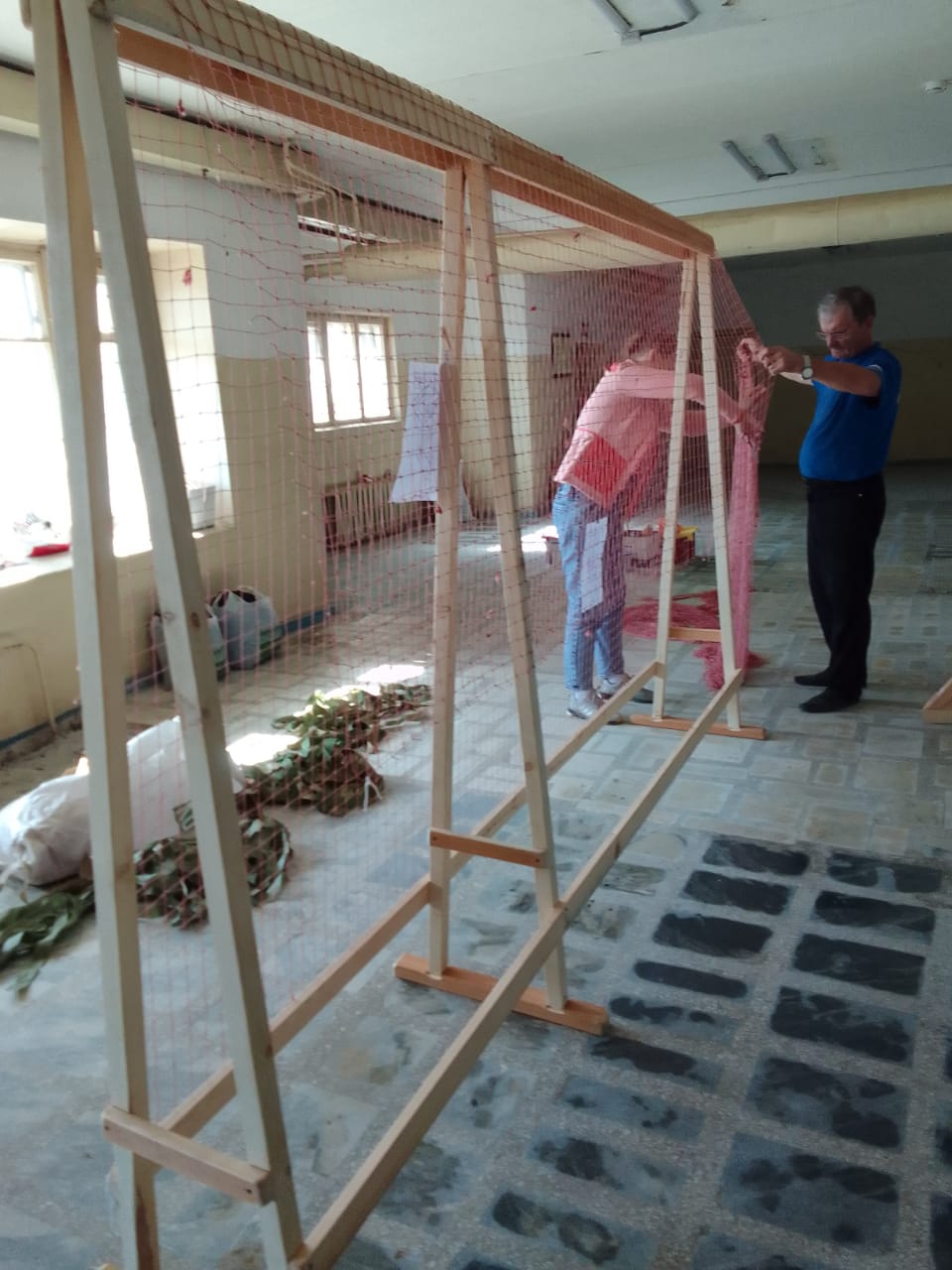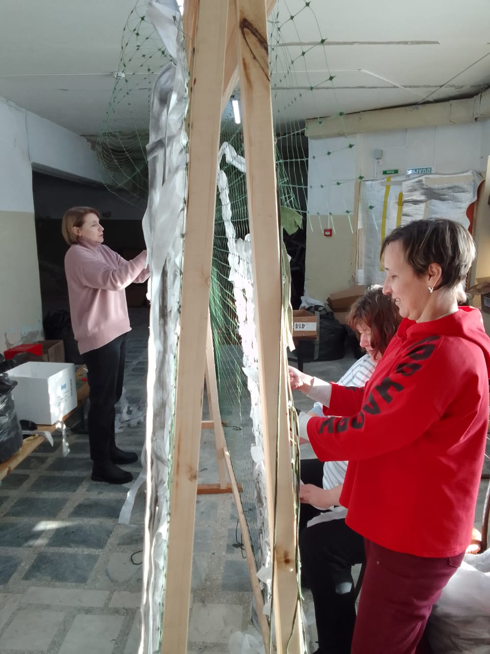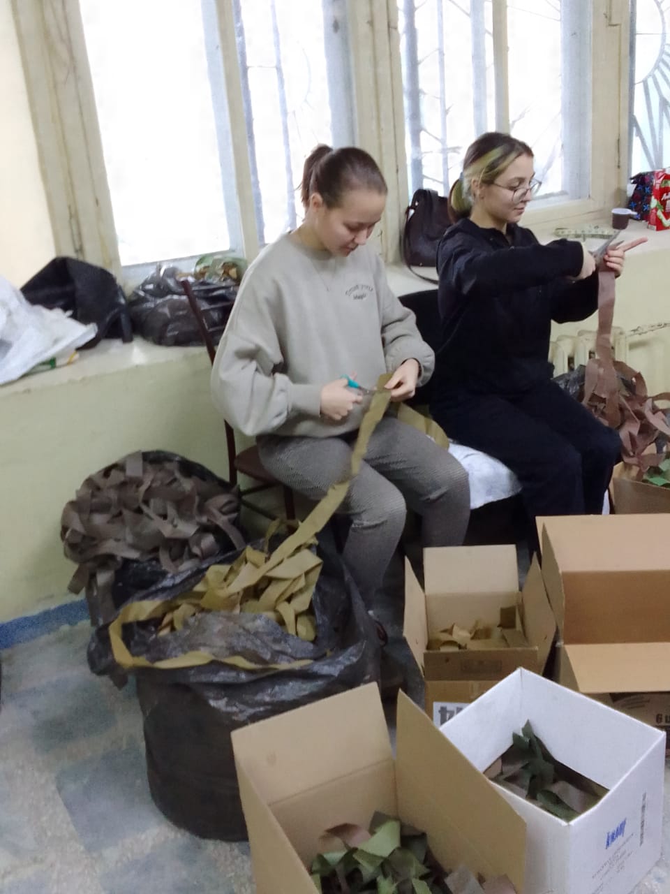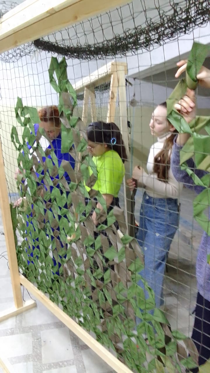 Но осенью 2023 года возникла новая острая потребность — маскировочные сети. Волонтёры обратились в Союз ветеранов боевых действий г.Новоуральска, прошли обучение, нашли помещение, и 13 сентября 2023 года была сплетена первая сеть. В работу включились и школьники: в ноябре 2023 года учащиеся Калиновской средней школы вместе с классным руководителем Натальей Матвеевой и парой учителей стали помогать волонтёрам.